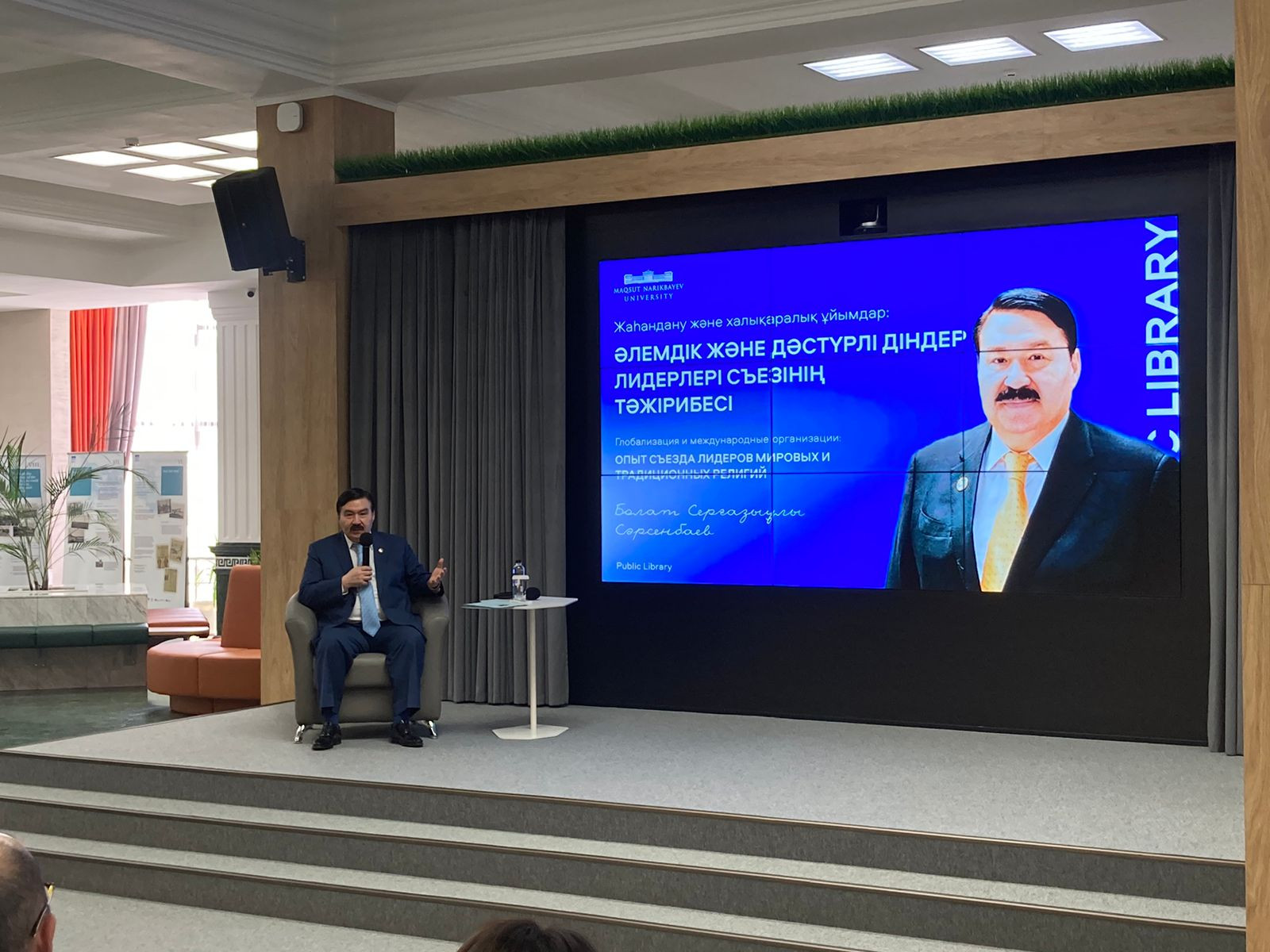 On April 21, 2023, Chairman of the Board of the N. Nazarbayev Center for Development of Interfaith and Inter-Civilization Dialogue Bulat Sarsenbayev held a lecture in Astana on the results of the VII Congress of the Leaders of World and Traditional Religions held in September 2022 in the capital of Kazakhstan for students, undergraduates and professors of the Kazakh Humanitarian Law University named after M.Narikbayev.