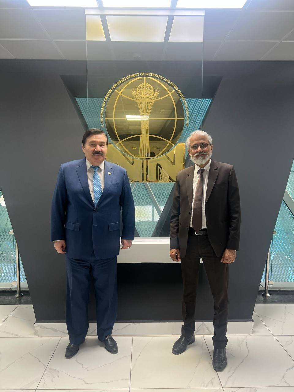 On May 17, 2023, the Chairman of the Board of the N.Nazarbayev Center for Development of Interfaith and Inter-Civilization Dialogue Bulat Sarsenbayev met with the Director of the Swami Vivekananda Cultural Centre of the Embassy of India in Kazakhstan Mr. Sanjay Vedi.