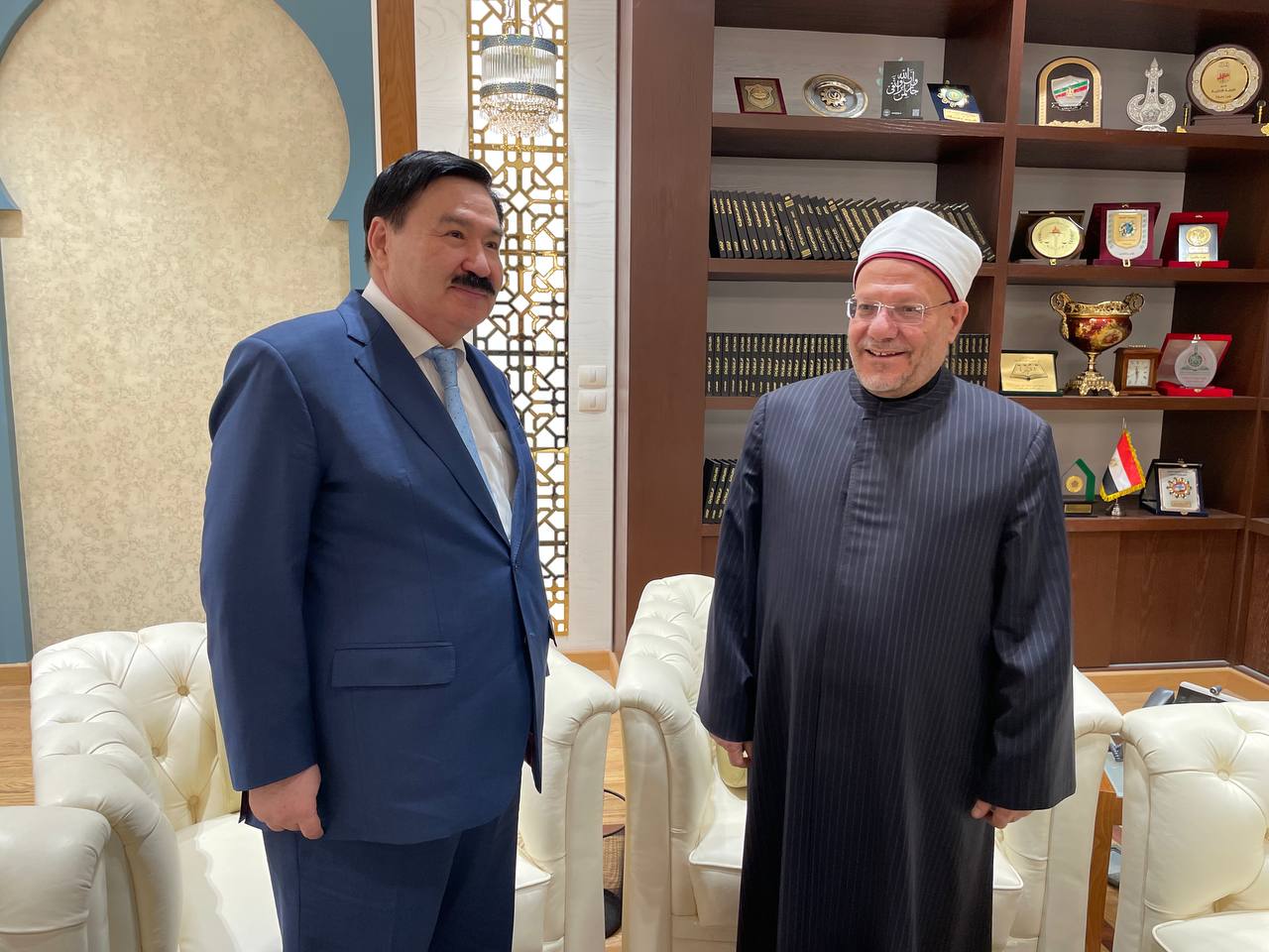On February 18-19, within the framework of the working trip of the Commissioner for the Promotion of the goals and objectives of the Congress of Leaders of World and Traditional Religions - Chairman of the Board of the N.Nazarbayev Center for Development of Interfaith and Intercivilization Dialogue Bulat Sarsenbayev to the Arab Republic of Egypt (Cairo), bilateral meetings were held with the Minister of Religious Affairs and Endowments (Awqaf) of Egypt Muhammad Mukhtar Juma, the Grand Mufti of Egypt Shawki Ibrahim Abdel-Karim Allam, Secretary General of Al-Azhar Islamic Research Academy Nazir Mohammed Mohammed Al-Nazir Ayad, the Chief Bishop and Head of the Coptic Orthodox Cultural Center in Cairo, Bishop Ermia and President of Al-Azhar University, Dr. Salama Zhuma Daoud, the Member of the Board of the Doha Center for Interfaith Dialogue, Youssef Al-Siddiqui.