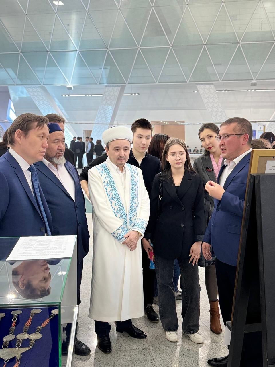 The opening of the exhibition was attended by the Chairman of the Committee on Religious Affairs of the Ministry of Culture and Information of the Republic of Kazakhstan E. Nukezhanov, Acting Chairman of the Board of the N. Nazarbayev Center D. Yessenova, Deputy Chairman of the spiritual administration of Muslims of Kazakhstan, Naib Mufti E. Ongarov, representatives of the diplomatic departments of Pakistan, the Kingdom of Morocco, Iraq, Iran, Azerbaijan in Kazakhstan, as well as students of the L.N. Gumilev Eurasian National University and the Higher College of the Eurasian Humanitarian Institute.