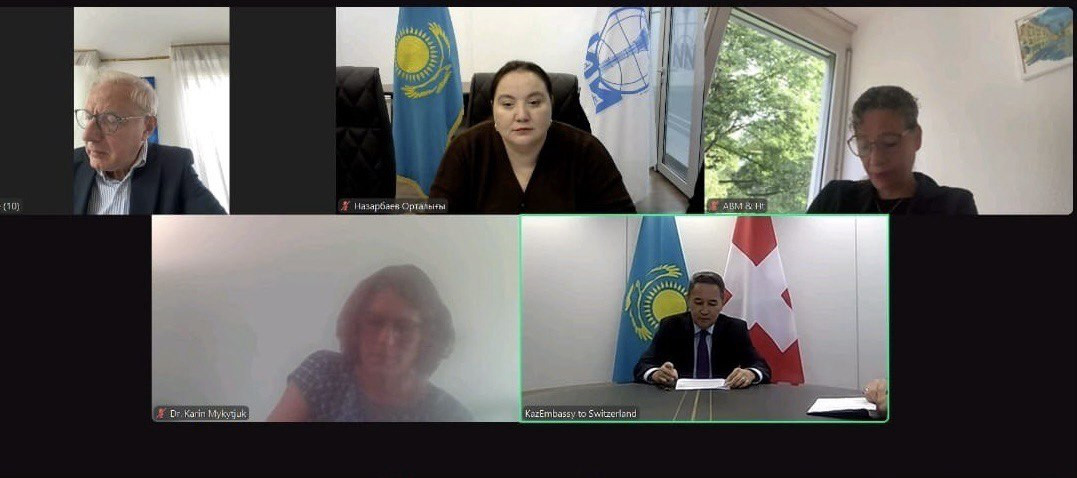 On September 3, 2024 N. Nazarbayev Center for the Development of Interfaith and Intercivilization Dialogue held an online meeting with the House of Religions - Dialogue of Cultures. The meeting was attended by the Ambassador of the Republic of Kazakhstan to Swiss Confederation K. Sarzhanov, Acting Chairman of the N. Nazarbayev Center for the Development of Interfaith and Intercivilization Dialogue D.Yessenova, President of the Board of the House of Religions - Dialogue of Cultures J. Matyassy, Member of the Board, representative of the Baha'i community Ann B. Mannen and co CEO of the House of Religions - Dialogue of Cultures K. Mykytjuk.