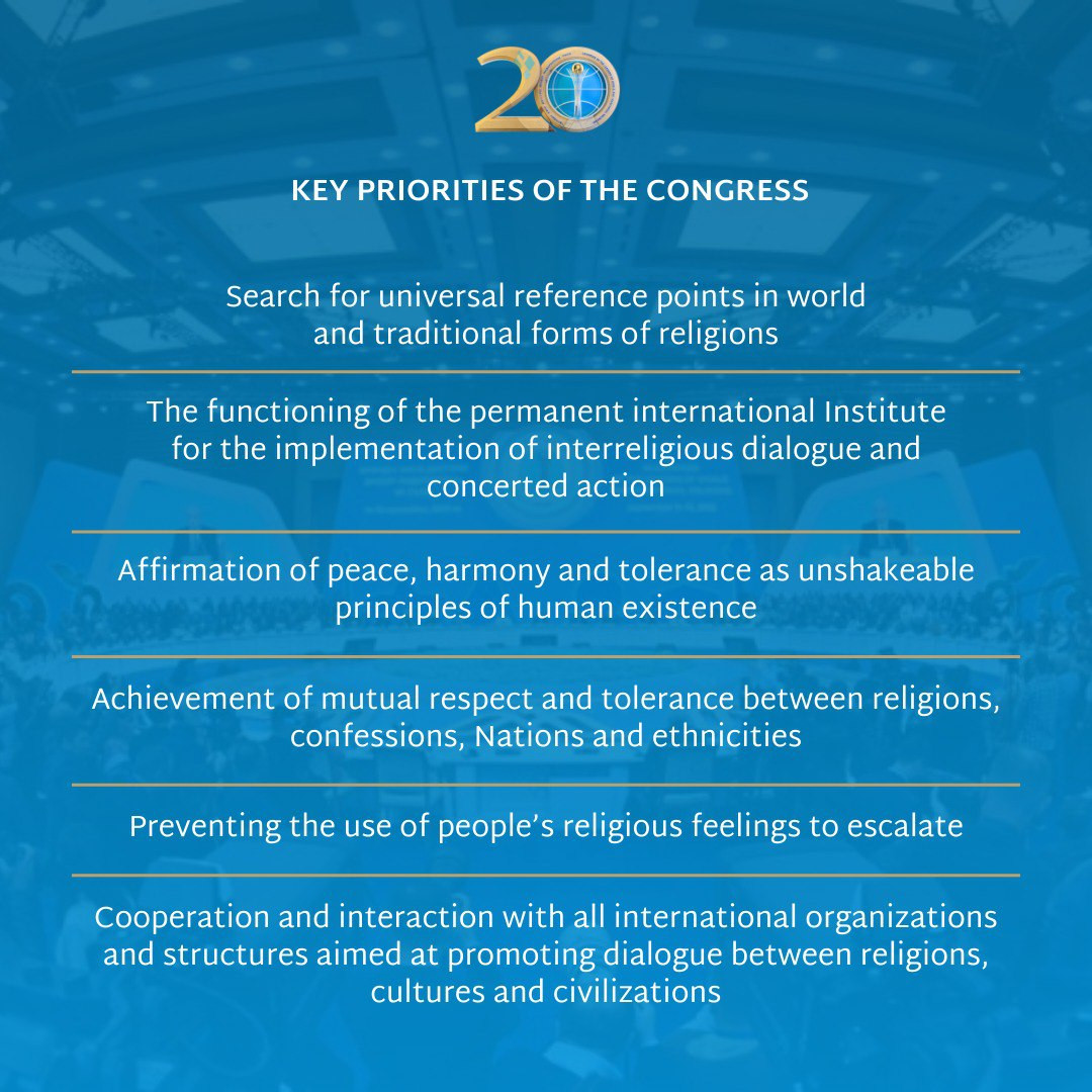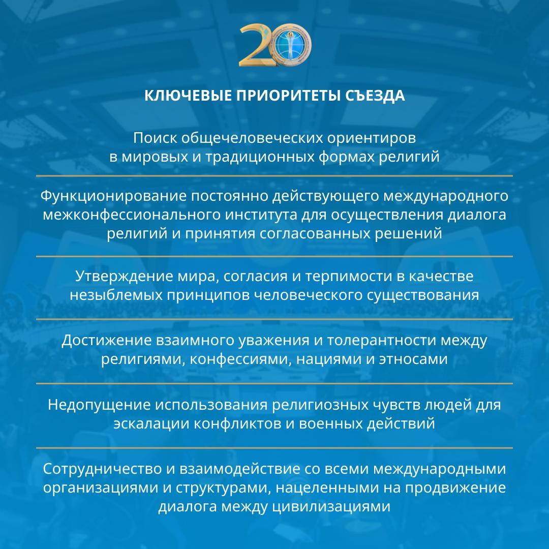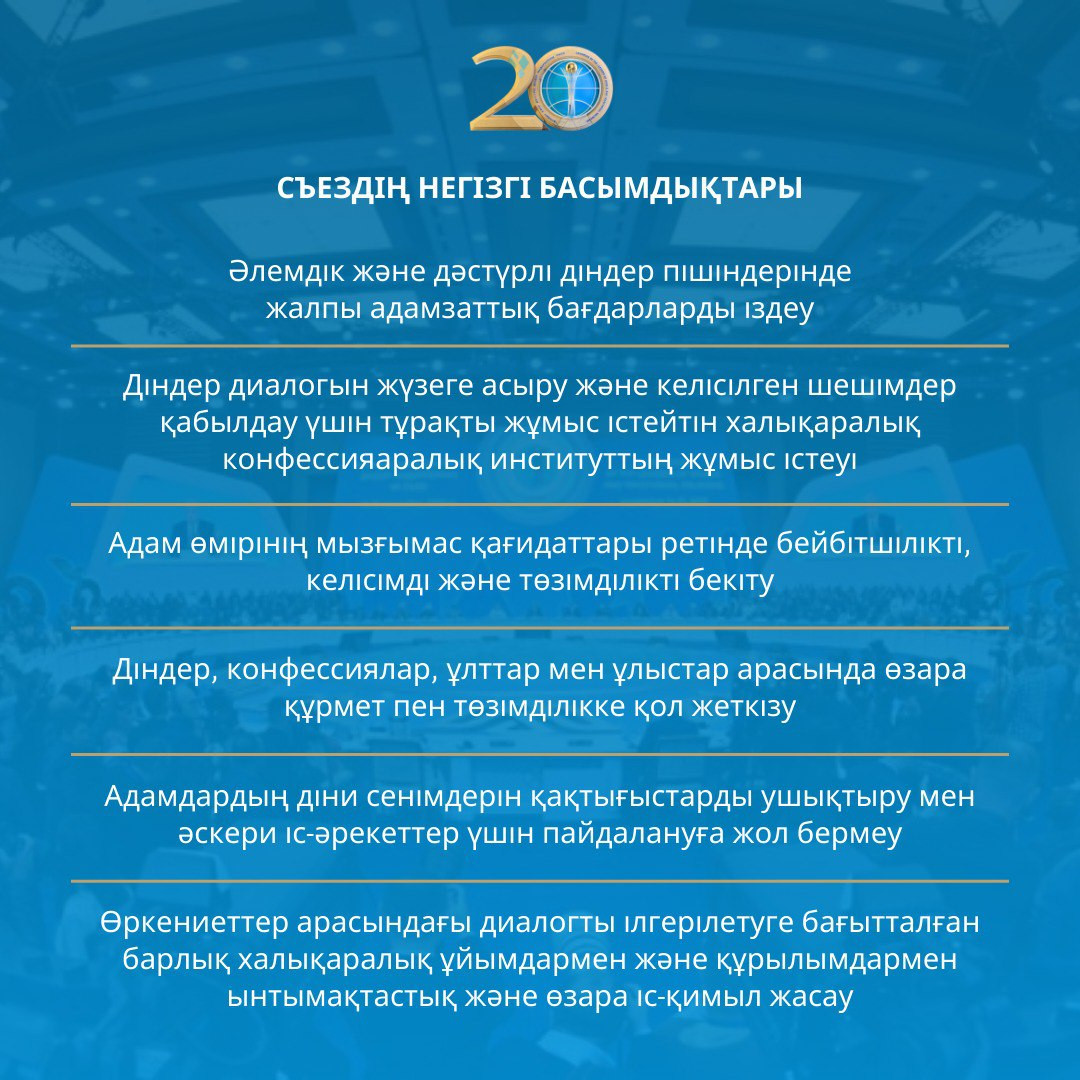 Әлемдік және дәстүрлі діндер лидерлері Съезінің негізгі басымдықтары