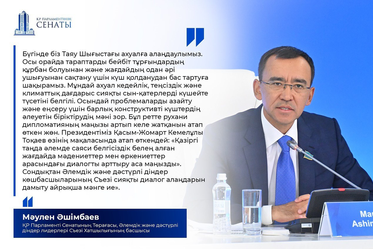 Парламент Сенатының Спикері Мәулен Әшімбаевтың төрағалығымен Әлемдік және дәстүрлі діндер лидерлері Съезі Хатшылығының XXII отырысы өтті. Кездесуге 19 елден келген дін қызметкерлері мен халықаралық ұйымдардың өкілдері қатысты. Ауқымды іс-шара түрлі ұлттардың және конфессиялардың ынтымақтастығын көздейтін идеяға табан тірейді.