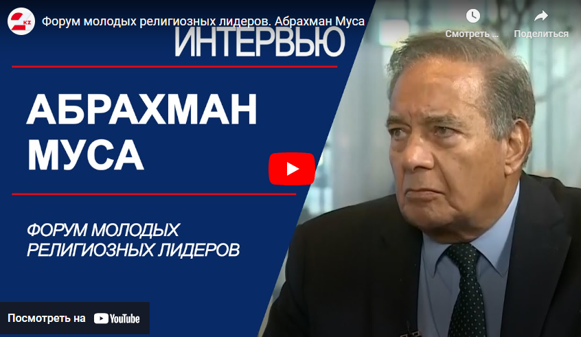 Назарларыңызға Жас діни лидерлер форумынының арнайы қонағы Шейх Әль-Азхар Кеңсесінің басшысы, Елші Абдрахман Мұсаның отандық телеарнаға берген сұхбатын ұсынамыз