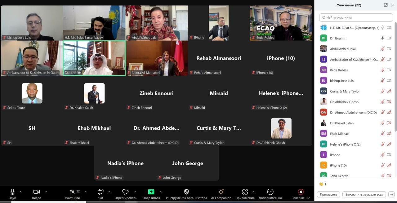2024 жылдың 28 қарашасында Конфессияаралық және дінаралық диалогтың халықаралық орталығы мен Доха халықаралық конфессияаралық диалог орталығының (Катар) ұйымдастыруымен бірлескен онлайн дөңгелек үстел өтті. Шараға Катар, БАӘ, Әзірбайжан, Бахрейн, Малайзия, Пәкістан, Үндістан және Қазақстаннан діни бірлестіктер өкілдері, тұрақты даму саласындағы сарапшылар, дипломаттар, сондай-ақ диалог және әлеуметтік тұрақтылық мәселелеріне маманданған ғалымдар қатысты.
