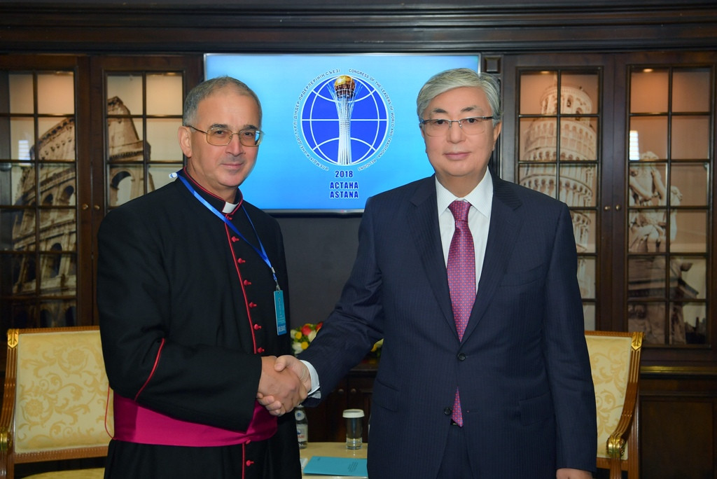 Киелі Тақтың дінаралық үнқатысу жөніндегі Папа кеңесіндегі исламмен байланыс бөлімінің меңгерушісі монсеньор Халед Акашемен әңгіме барысында Қ.Тоқаев Рим-католик шіркеуінің бейбітшілік пен ынтымақты қолдау және өркениеттер мен діндер арасындағы диалогты дамыту қызметін жоғары бағалап, Астанада өтіп жатқан форумға қолдау көрсеткені үшін алғыс білдірді.