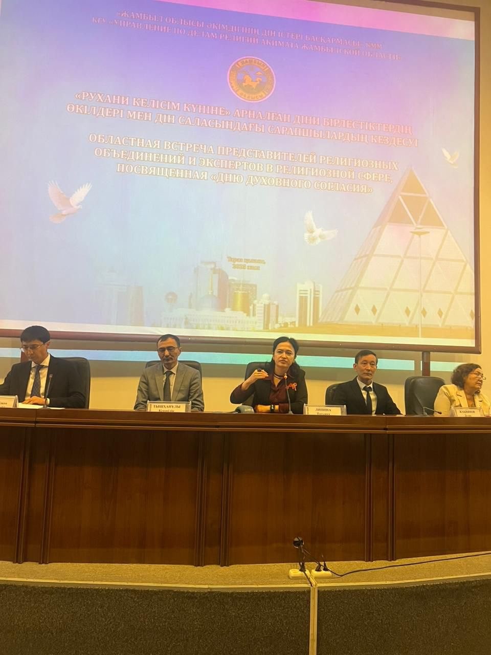2025 жылғы 16 қазанда Тараз қаласында Конфессияаралық және дінаралық диалогтың халықаралық орталығының қызметкерлері Рухани келісім күніне арналған Діни бірлестіктер өкілдері мен дін саласындағы сарапшылардың облыстық кездесуінде дәріс оқыды.