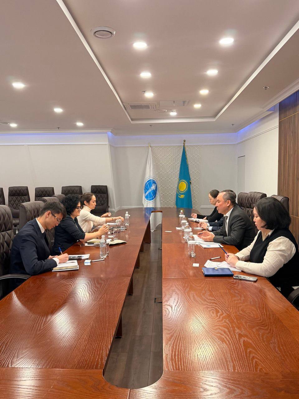 Кездесу барысында Төраға орынбасары қонақтарды Халықаралық Орталықтың құрылу тарихымен, қызметімен, сондай ақ, Орталық құрылымдары, департаменттерінің негізгі жұмыс бағыттарымен таныстырды.