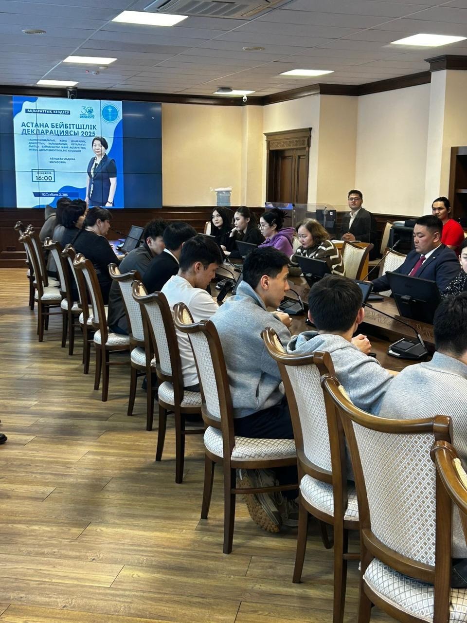 Дәріс соңында М.Әбішева Астана бейбітшілік Декларациясы 2025 маңызды құжат ретінде Съездің он тіліне аударылғанын және БҰҰ Бас Ассамблеясының 80-сессиясының ресми құжаты ретінде Қазақстанның шетелдегі мекемелері арқылы Съез Серіктестеріне таратылғандығы жайлы қорытынды жасады.