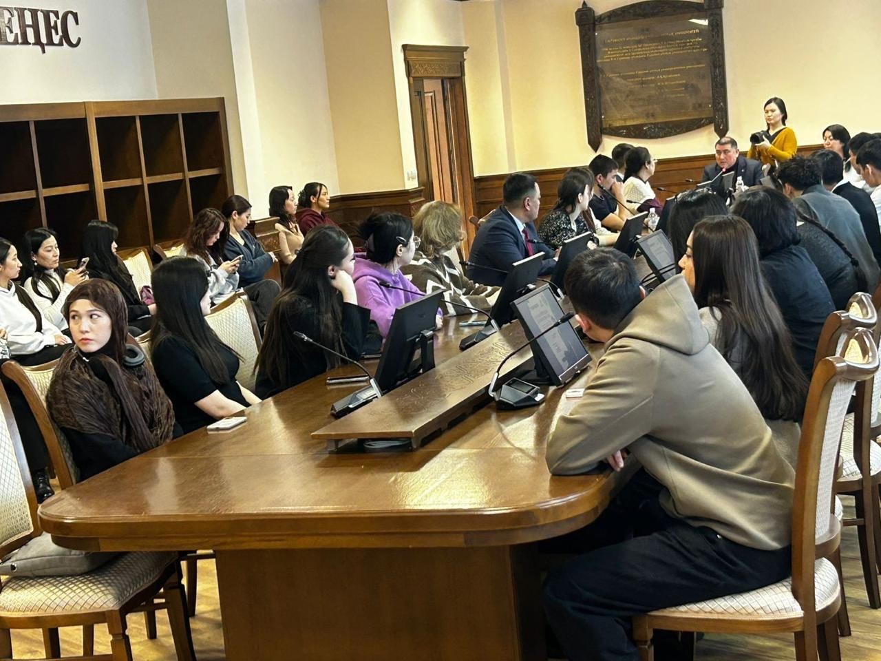 Дәріскер ретінде Орталықтың Сыртқы байланыстар және ақпараттық жұмыс департаментінің бас консультанты Мәдина Әбішева сөз сөйледі. Іс-шараға университеттің 13 факультетінің студенттері, сондай-ақ профессор-оқытушылар құрамының өкілдері қатысты.