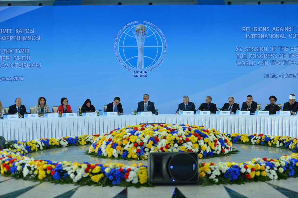 «Діндер терроризмге қарсы» атты халықаралық конференция Әлемдік және дәстүрлі діндер лидерлері съезі ая̀сында сәтті өтіп жүрген саяси және дінѝ қайраткерлер сұхбатының бірегей форматын дамытуға айрықша серпін береді. Осы форумның Астанада өтуінің өзіндік мәні бар. Жүзден астам этнос өкілдері тұратын Қазақстан халқы «әралуандық арқылы бірлік» қағидатын ұстанады. Бұл біздің халқымызға сан түрлі қиындықтарды еңсеру, әлеуметтік-экономикалық даму жолында зор жетістіктерге жету үшін күш-қуат берді.