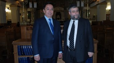 Мәскеулік хорал синагогасында ҚР Дін істері агенттігінің Төрағасы Қайрат Лама Шариф Еуропалық раввиндер конференциясының Президенті, Мәскеудің Бас раввині Пинхас Гольдшмидтепен кездесті.