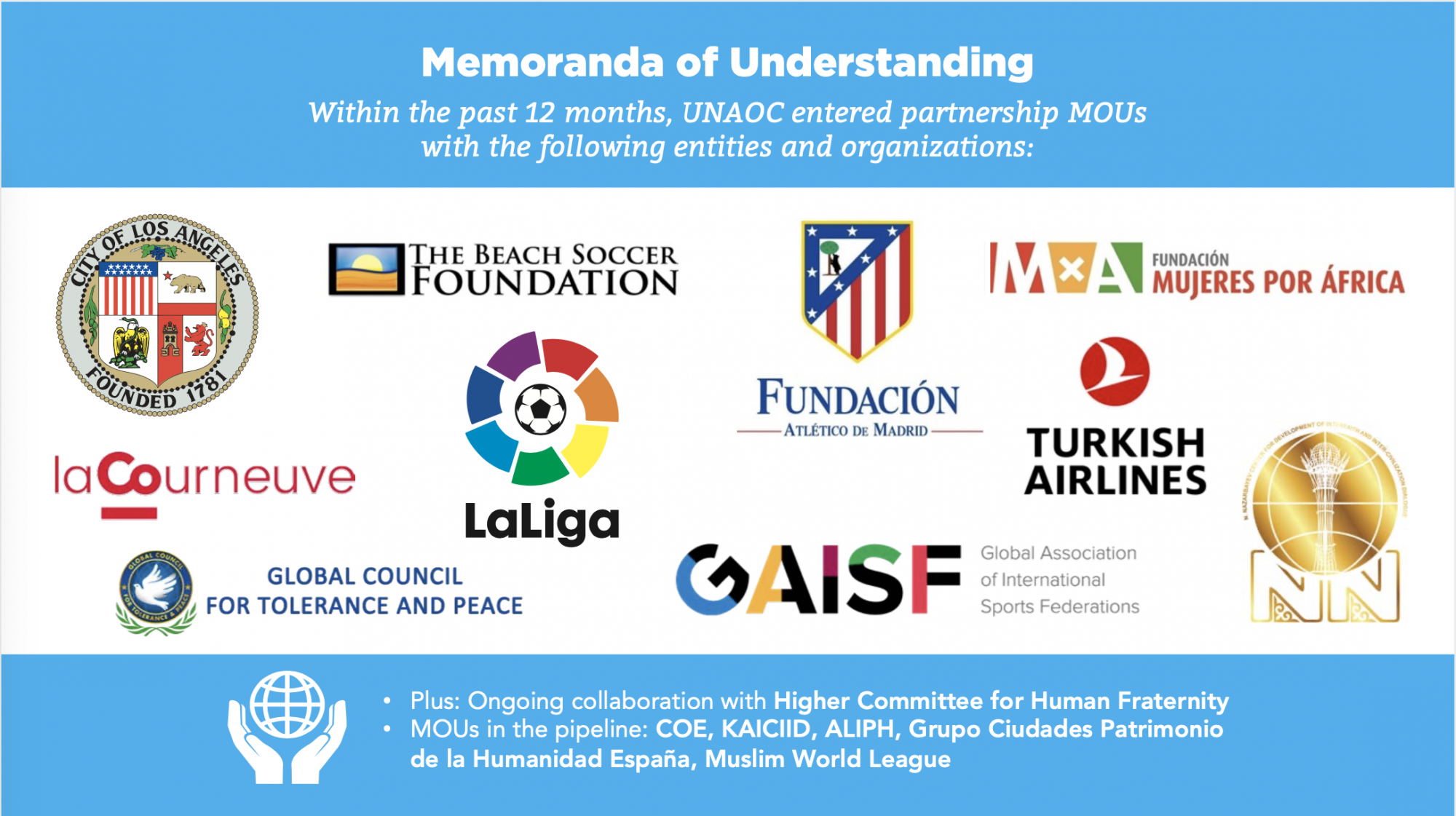 29 қыркүйек күні онлайн форматта өткен Біріккен Ұлттар Ұйымы Өркениеттер альянсы Достар тобының жыл сайынғы кездесуі барысында 2019 жылы Конфессияаралық және өркениетаралық диалогты дамыту жөніндегі Н.Назарбаев орталығы мен БҰҰ Өркениеттер альянсы арасында қол жеткізілген серіктестік жоғары бағаға ие болды. Бұл уағдаластық Қазақстанда өтетін Әлемдік және дәстүрлі діндер лидерлері съезінің бейбітшілік пен келісім үдерісін жандардыруға бағыттылған.