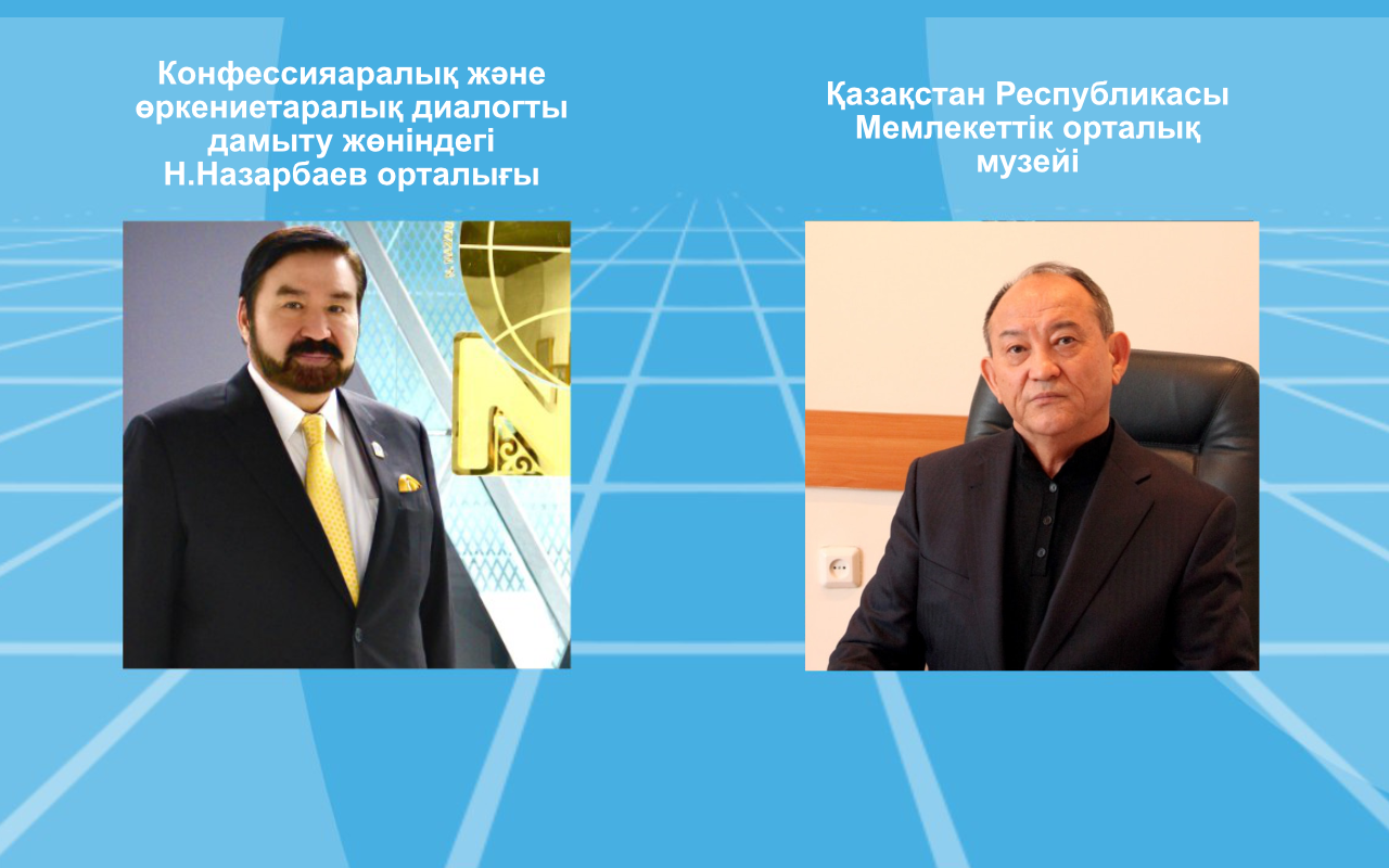 Бүгін, 28 сәуір күні Конфессияаралық және өркениетаралық диалогты дамыту жөніндегі Н.Назарбаев орталығының Басқарма Төрағасы Болат Сәрсенбаев және Қазақстан Республикасы Мемлекеттік орталық музейінің директоры Нұрсан Әлімбай ZOOM платформасында онлайн форматта жұмыс кездесу аясында дінаралық және мәдени-гуманитарлық саладағы серіктестік мәселелерін талқылады.