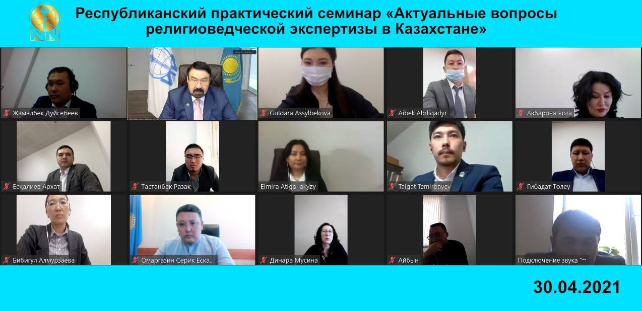 2021 жылдың 30 сәуірінде ZOOM платформасында Конфессияаралық және өркениетаралық диалогты дамыту жөніндегі Н.Назарбаев орталығының Діни ахуалды талдау және діни сараптама институты «Қазақстандағы діни және сот-діни сараптаманың өзекті мәселелері» тақырыбында республикалық тәжірибелік семинар өткізді.