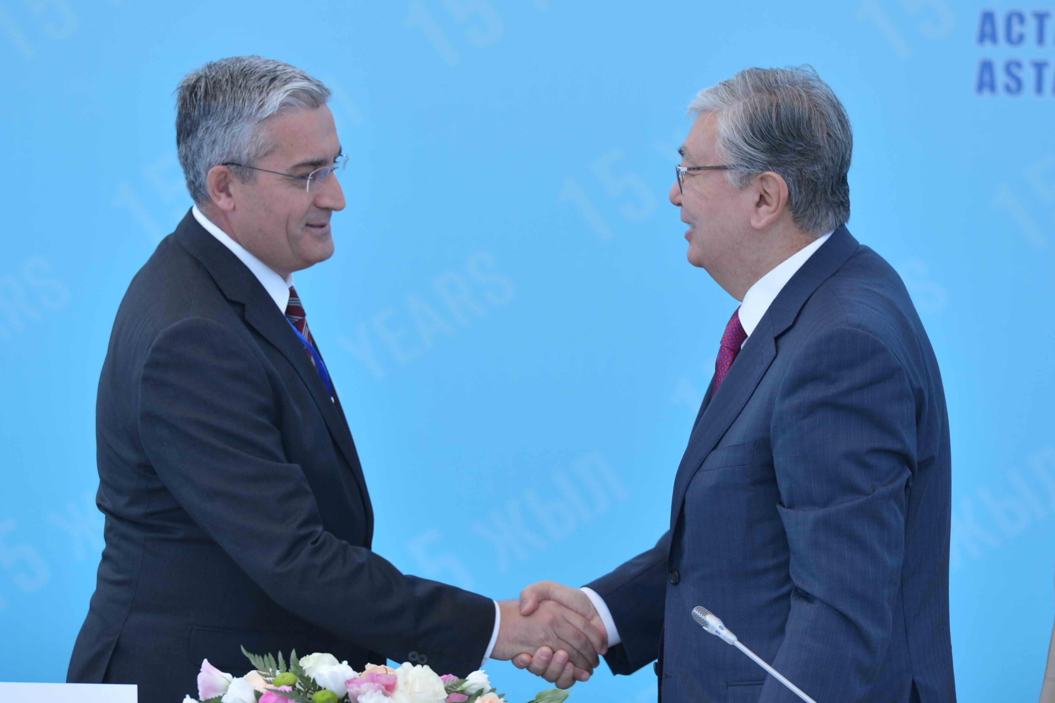 2018 жылғы 11 қазан Біз, VI съездің қатысушылары – барша адамзаттың гүлденуі жолында бейбітшілікке, келісімге және жасампаз ынтымақтастыққа бірыңғай ұмтылыспен біріккен әлемдік және дәстүрлі діндердің өкілдері, мемлекет басшылары, халықаралық ұйымдардың басшылары, Қазақстан Республикасының Президенті, Жоғары Мәртебелі Нұрсұлтан Назарбаев мырзаға біздің халықтарымыз бен мемлекеттеріміз арасындағы бейбітшілік пен келісімге, диалог пен қауіпсіздікке қол жеткізу үдерісіне теңдессіз үлесі үшін шексіз ризашылығымыз бен алғысымызды білдіре отырып, барша Қазақстан халқына және оның Үкіметіне олардың кішіпейілділігі мен қонақжайлылығына өзіміздің шексіз қошеметіміз бен құрметімізді куәландыра отырып, болашақ ұрпақ үшін жанжалсыз келешек құру жолында өркениеттер мен діндер арасындағы бітімгерлік диалогты дамыту мен алға жылжытудағы Қазақстан Республикасының бірегей үлесін мойындай отырып, өркениетаралық және дінаралық диалогты дамыту мен нығайту үшін Әлемдік және дәстүрлі діндер лидерлері съезінің іргелі рөлін бірегей жаһандық платформа ретінде қошеметтей отырып, Әлемдік және дәстүрлі діндер лидерлерінің бес Съезінің нәтижесі бойынша айтылған алдыңғы Мәлімдемелердің рухына адал бола отырып, планетамыздың діни және мәдени әралуандығын адамзат өркениетінің ұлы мұрасы ретінде сақтаудың маңыздылығын растай отырып, Әлемдік және дәстүрлі діндер лидерлерінің диалог пен позитивті гуманистік құндылықтарды насихаттау арқылы халықтар мен мемлекеттердің бейбіт қатар өмір сүруін ілгерілетуге мүдделі мемлекеттік және қоғамдық институттармен ынтымақтастығының маңыздылығын атап көрсете отырып, мемлекеттер, қоғам және халықтар арасындағы бейбітшілік пен өзара түсіністік идеяларын ілгерілету мен насихаттау саласындағы үкіметтердің, сондай-ақ үкіметтік және үкіметтік емес, ұлттық және халықаралық ұйымдардың, бұқаралық ақпарат құралдарының айрықша рөлін белгілей отырып, әлемдік өркениеттің әмбебап тірегі болатын көпконфессиялық қоғамның бейбіт қатар өмір сүруі мен өзара іс-қимылының бірегей тарихи үлгілеріне сүйене отырып, діни, этностық, мәдени және лингвистикалық айырмашылық негізіндегі шеттетуді, төзімсіздікті, кемсітушілікті, жанжалдарды және қайшылықтарды еңсеру жолындағы ынтымақтастықтың рухани бағдарынан таймаудың маңыздылығына айрықша мән бере отырып, игі істердің, қайырымдылыққа қызмет етудің, бейбітшілік пен әділдік идеяларына берілгендіктің халықтар мен мемлекеттерге әскери текетірестерге қарағанда әлдеқайда көп пайда әкелуі мүмкін екенін түсіне отырып, планетаның түрлі өңірлеріндегі әскери жанжалдар мен нақақ қантөгістерді шұғыл реттеуге және түбегейлі шешуге бағытталған саяси лидерлердің жігерін қолдай отырып, халықаралық террористік ұйымдар тарапынан жалғасып отырған дөрекі, жүйелі және адам құқықтарына жаппай нұқсан келтіру мен халықаралық гуманитарлық құқық нормаларын бұзуды және/немесе түрлі діндерге сенушілер арасындағы және сол бір сенімге нанушылар арасындағы өзара сенім мен өзара іс-қимылды бұзатын терроризмге қолдау көрсетуді барынша қатаң түрде сынға ала отырып, дінді саяси жанжалдарда әртүрлі теріс пайдаланудан, өзімшілдік пен төзімсіздік білдіруден, агрессияшыл ұлтшылдықтан және ерекшеленуге ұмтылудан бас тарта отырып, шетелдік жауынгер-террористердің ор