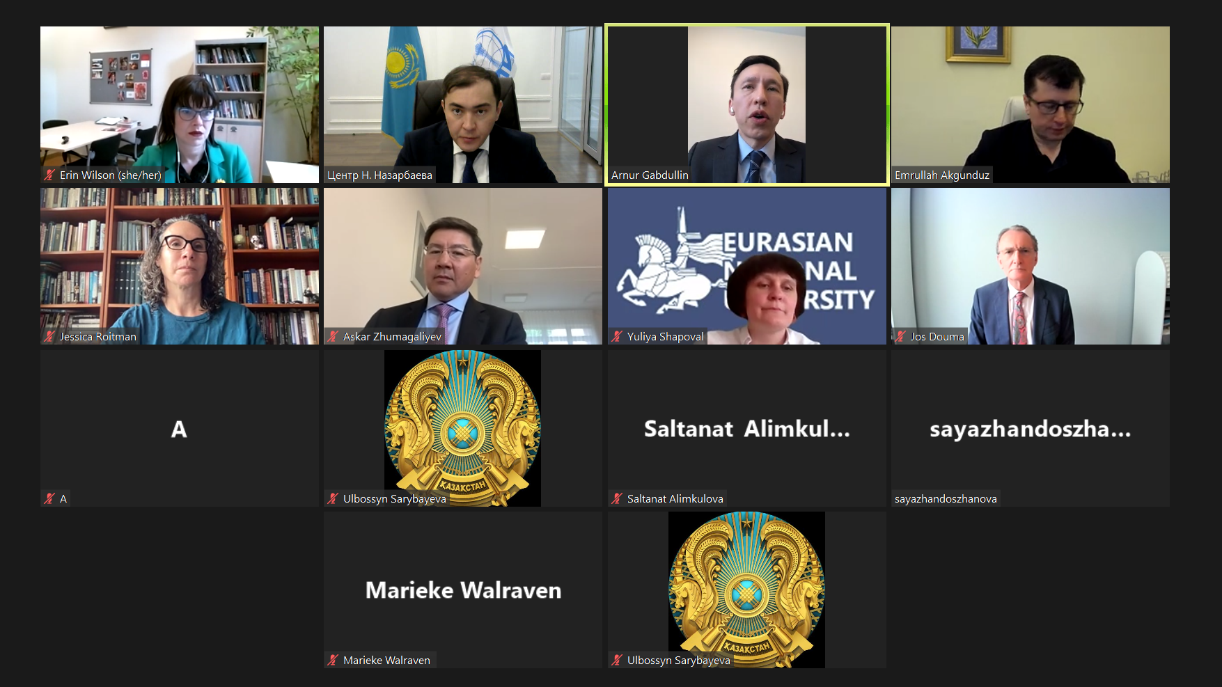 В работе круглого стола с казахстанской стороны выступили Посол РК в Нидерландах А. Жумагалиев, заместитель Председателя Правления Центра Н. Есимов, профессор кафедры религиоведения ЕНУ имени Л.Н. Гумилева Ю. Шаповал, председатель «Узбекского этнокультурного цента города Нур-Султан» Ш. Пулатов.