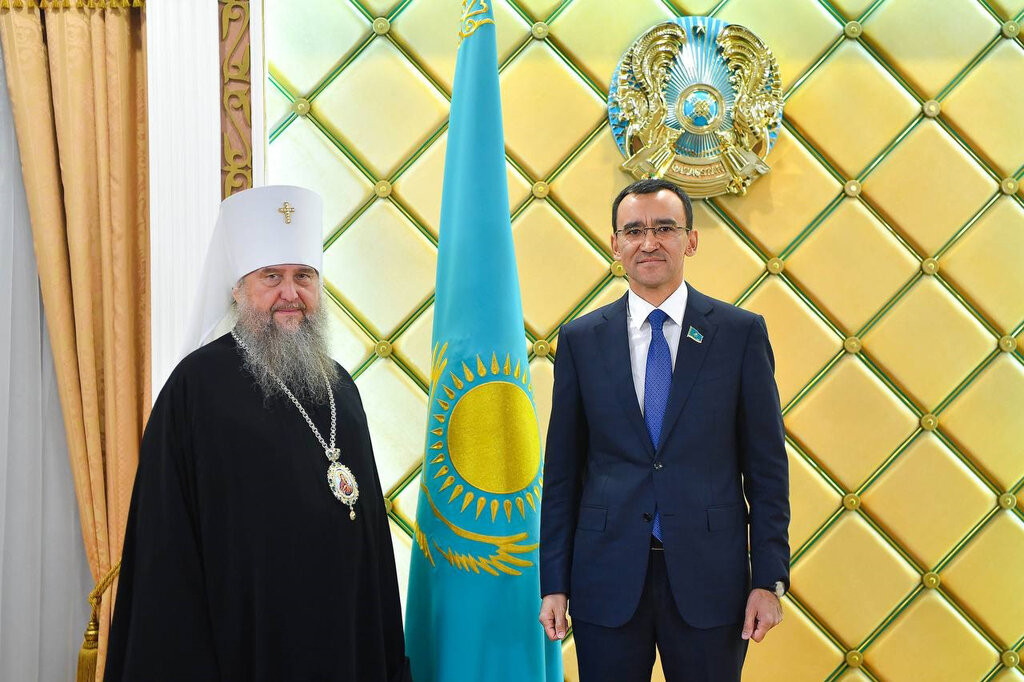 Председатель Сената Маулен Ашимбаев провел встречу с Митрополитом Астанайским и Казахстанским Александром.