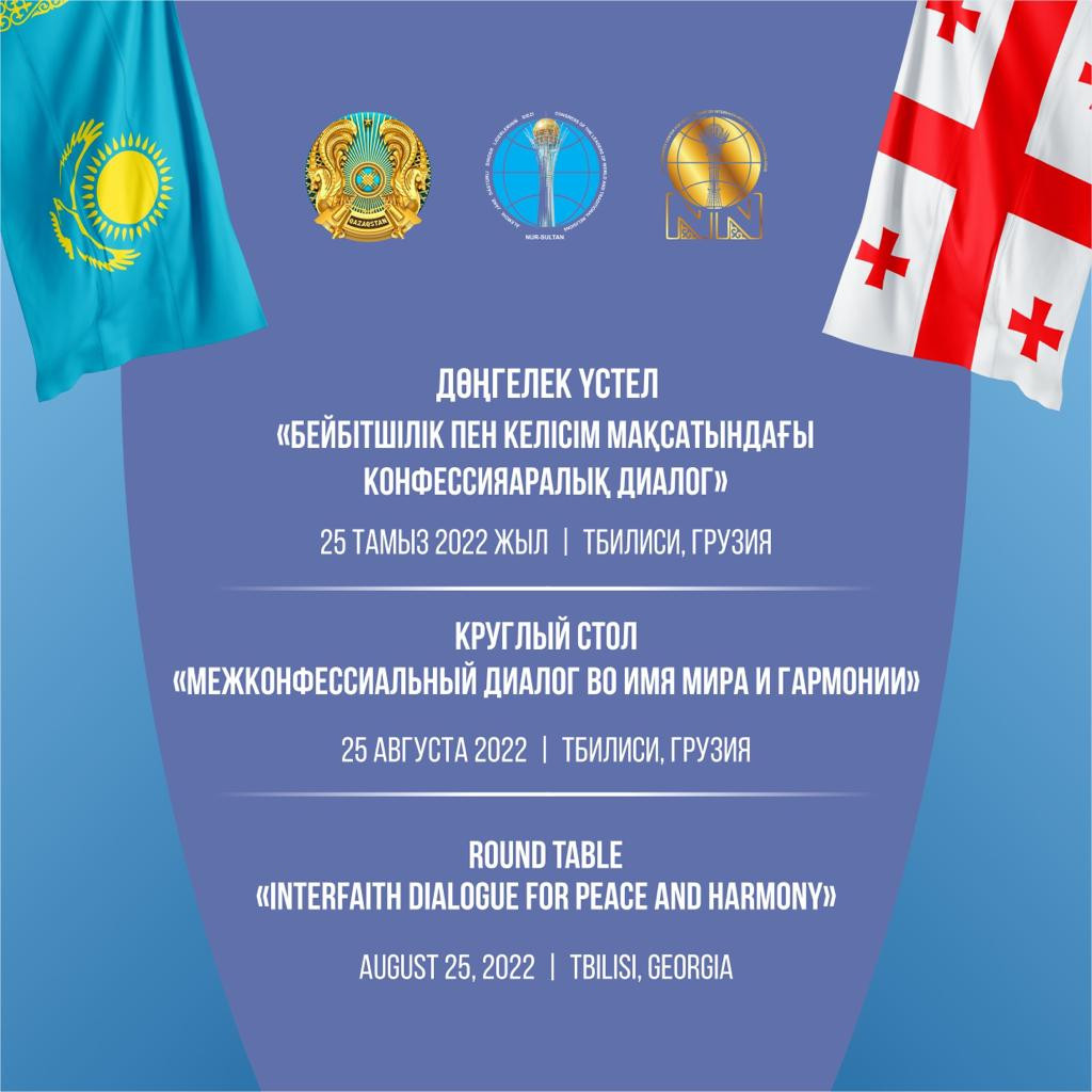 25 августа 2022 года в преддверии VII Съезда лидеров мировых и традиционных религий, Посольством РК в Грузии совместно с Центром Н.Назарбаева по развитию межконфессионального и межцивилизационного диалога проведен круглый стол на тему: «Межконфессиональный диалог во имя мира и гармонии».