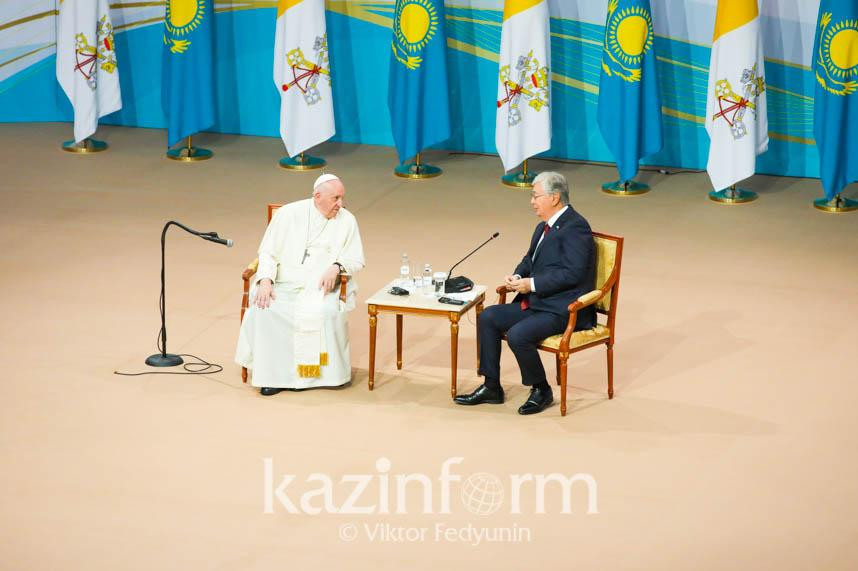 Мероприятие состоялось в Центральном концертном зале «Казахстан». Глава государства поблагодарив Папу Римского, поприветствовал собравшихся.