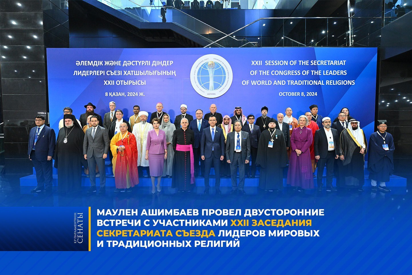 На полях XXІІ заседания Секретариата Съезда лидеров мировых и традиционных религий Спикер Сената, Руководитель Секретариата Съезда Маулен Ашимбаев провел ряд двусторонних встреч с религиозными лидерами и руководителями международных организаций.