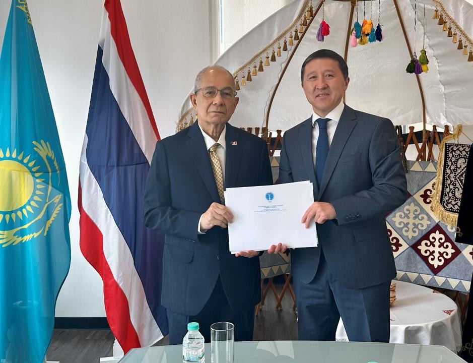 Бангкок, 11 июня 2025 года – Посол Казахстана в Таиланде Арман Исетов встретился с Президентом Всемирного братства буддистов Фаллоп Тайири.