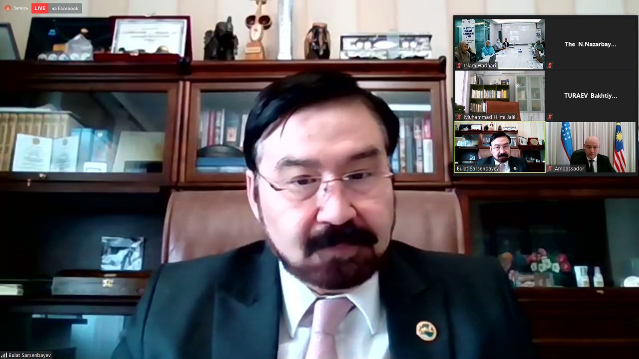 Сегодня, 8 апреля, Председатель Правления Центра Н. Назарбаева по развитию межконфессионального и межцивилизационного диалога Булат Сарсенбаев принял участие в онлайн-семинаре, организаторами, которого выступили Центр Исламской цивилизации Узбекистана и Институт ислама Хазари Малайзии.